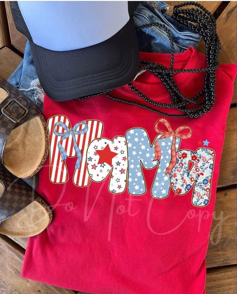 Flag Patriotic Left Chest Monogram T-Shirt With Bow