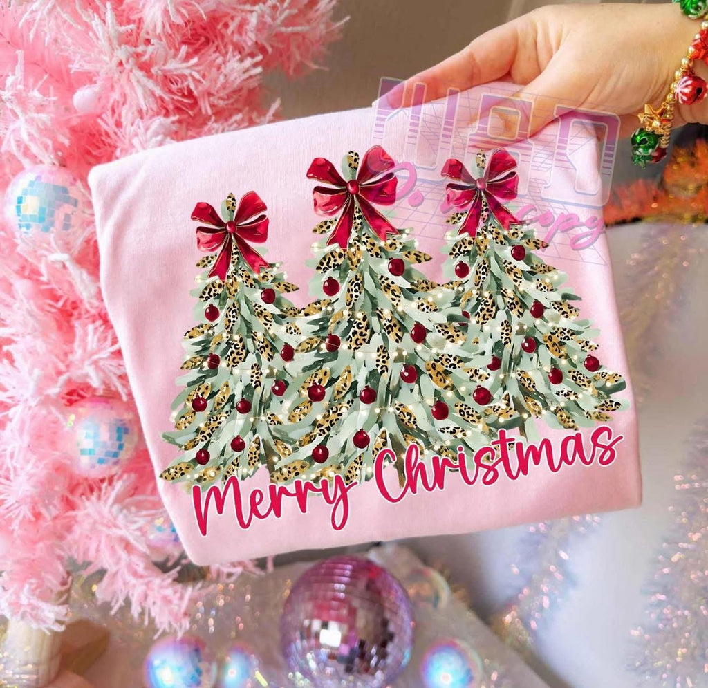 Red Bow Merry Christmas Leopard Christmas Tree Trio