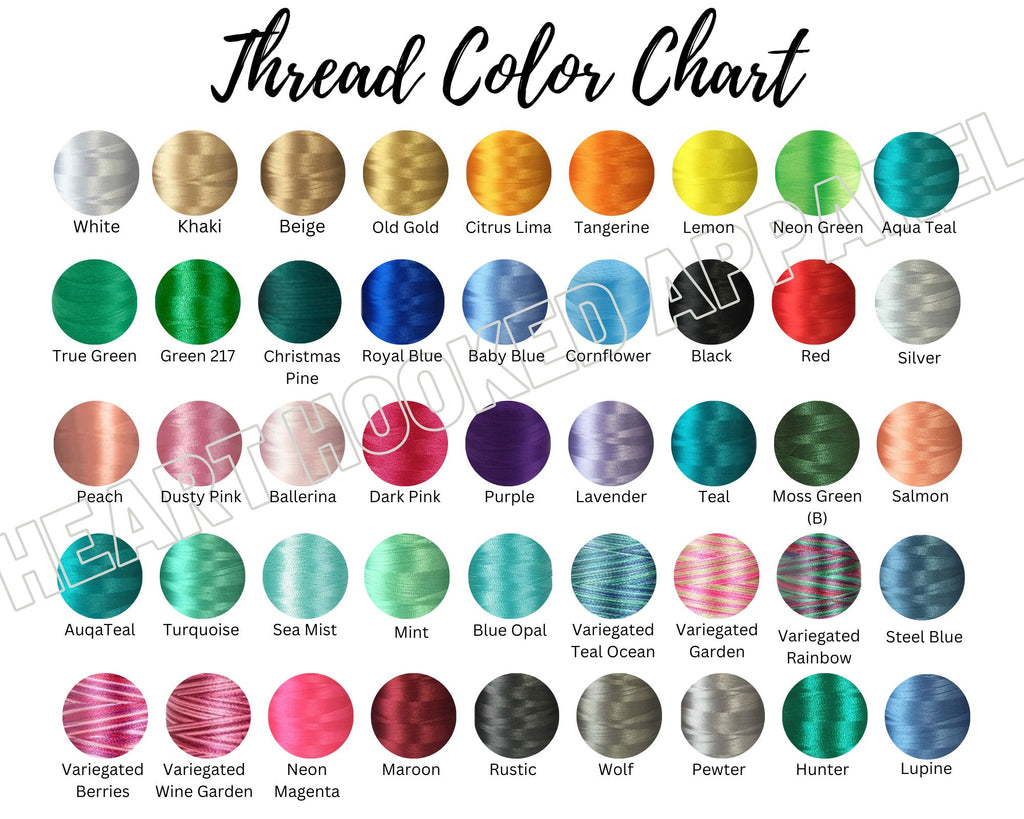 1:) Leave thread color choice in notes (color shown is navy thread)