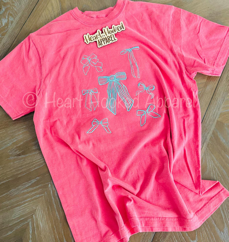 Coquette Bow Embroidered Comfort Color T-Shirt
