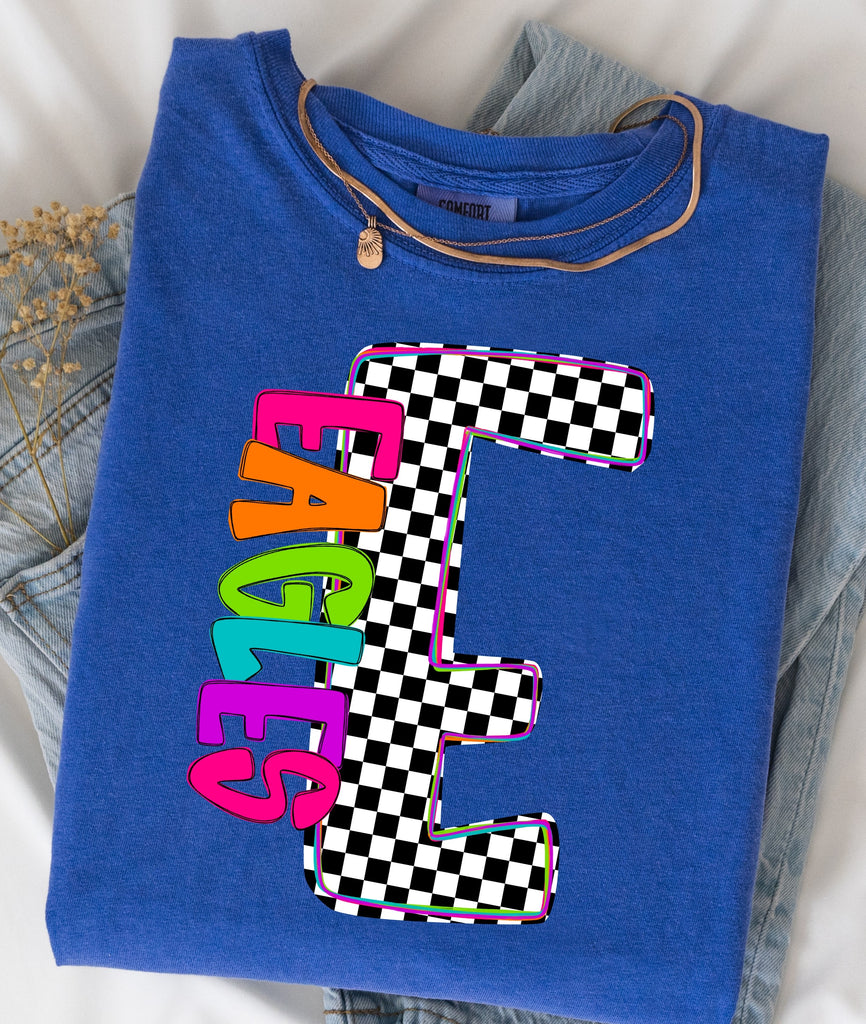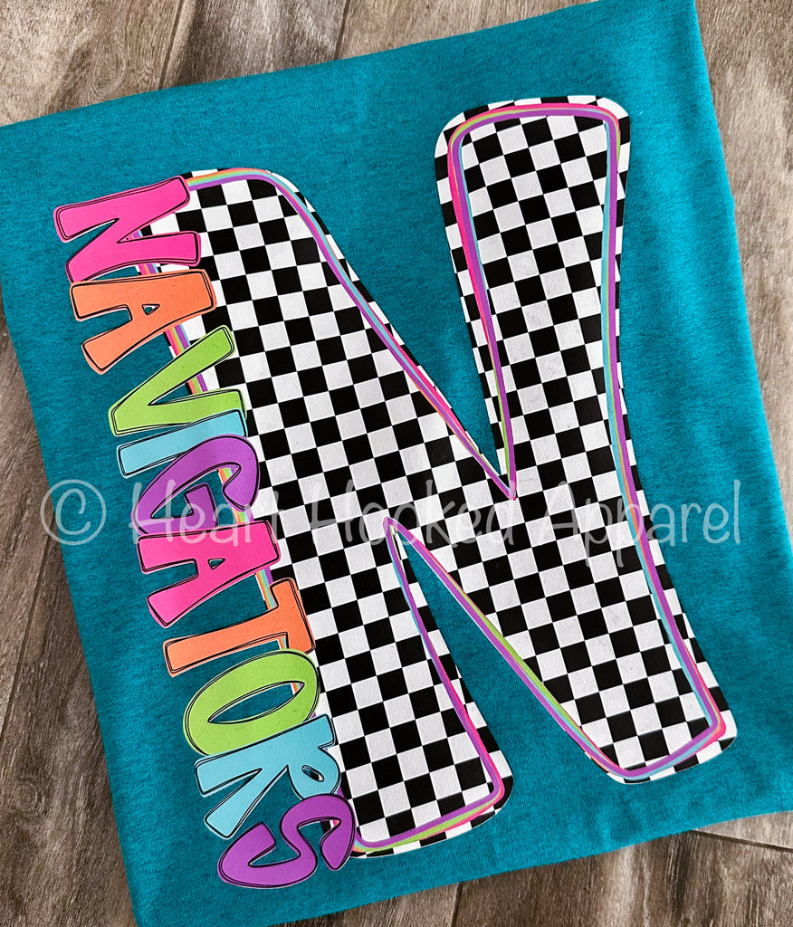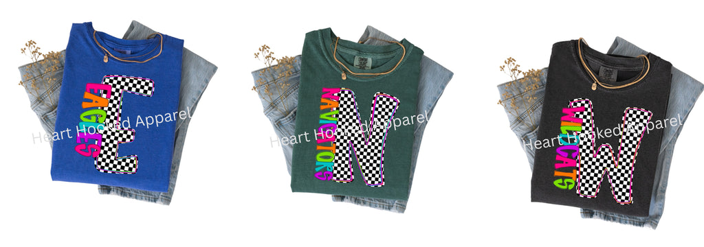Please leave shirt color at checkout in the notes section along with what team you need, leaving the Name and initial for the Checkered Letter, thank you!