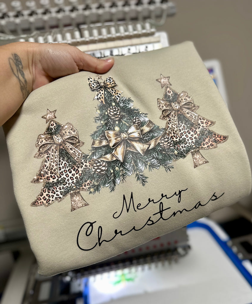 Leopard Merry Christmas Tree Trio Printed Sweatshirt